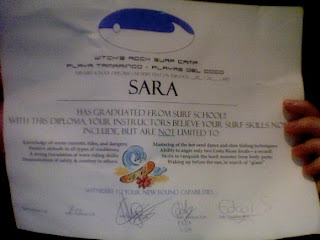 Second I think I would put in my graduation certificate from Witch's Rock Surf School. We got them at the end of our week spent there in Costa Rica, it was a fantastic place and the instructors were very helpful.